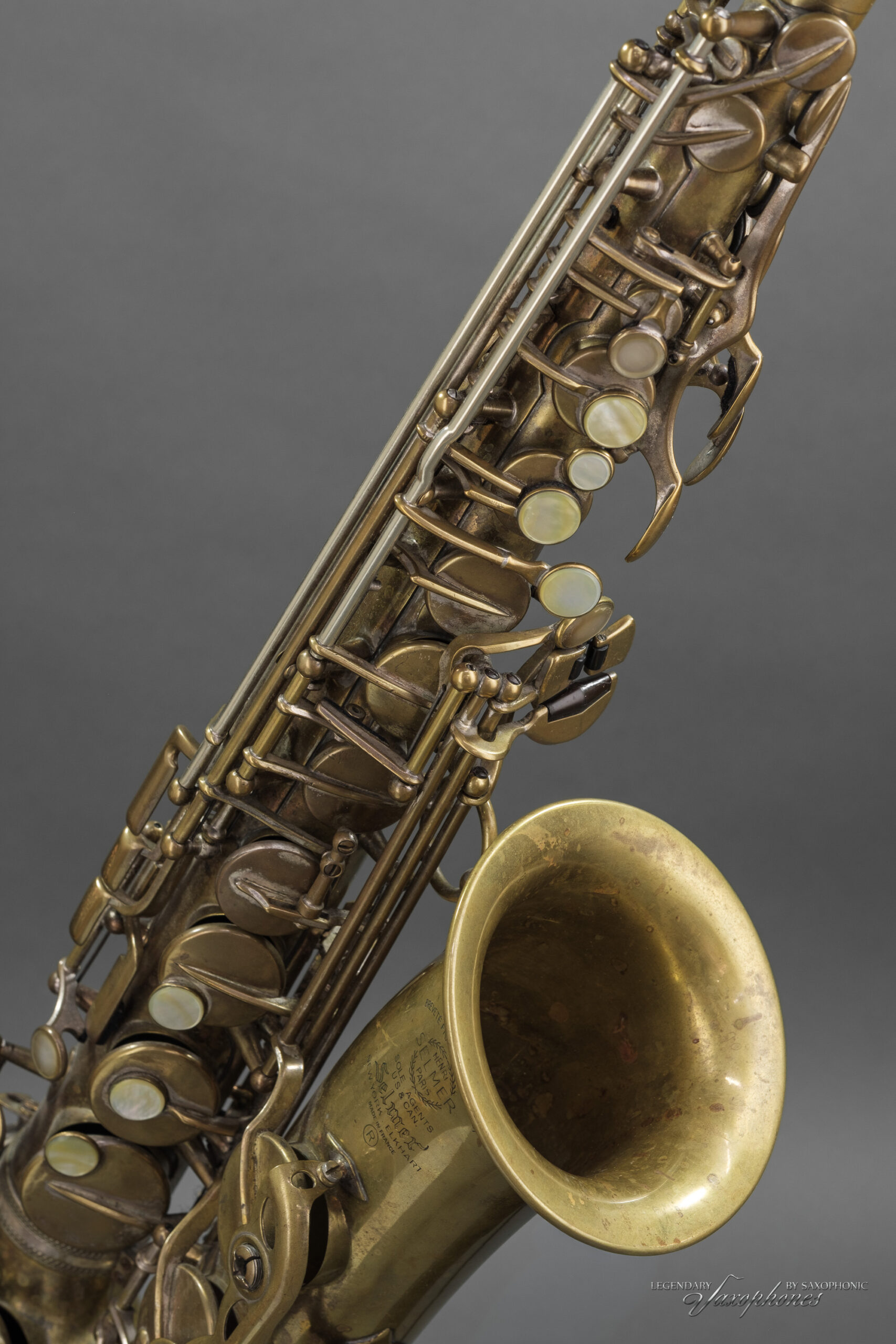 **Verkauft** 1953er SELMER Super Action (SBA) Altsaxophon #46484 mit hoch-F#, ohne Lack, schöne Patina, sehr selten!
